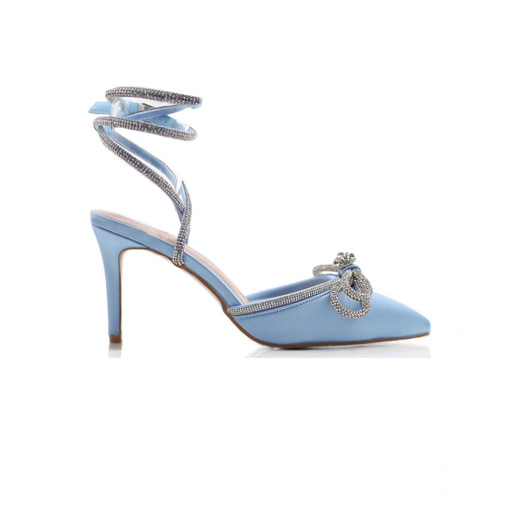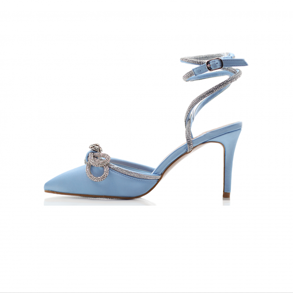 - صندل كعب برباط لون سماوي ناعم يعكس الأنوثة والرقي.