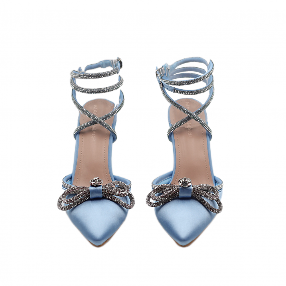صندل حريمي برباط ماخ أند ماخ – لون سماوي من بوتيك حنين. تصميم فاخر يخطف الأنفاس برباطه الأنثوي الأنيق ولمعانه الساحر، مستوحى من أشهر إبداعات دار Mach & Mach. اللون السماوي الهادئ يضفي لمسة راقية ومفعمة بالأنوثة، لإطلالة تخطف القلوب في كل مناسبة.