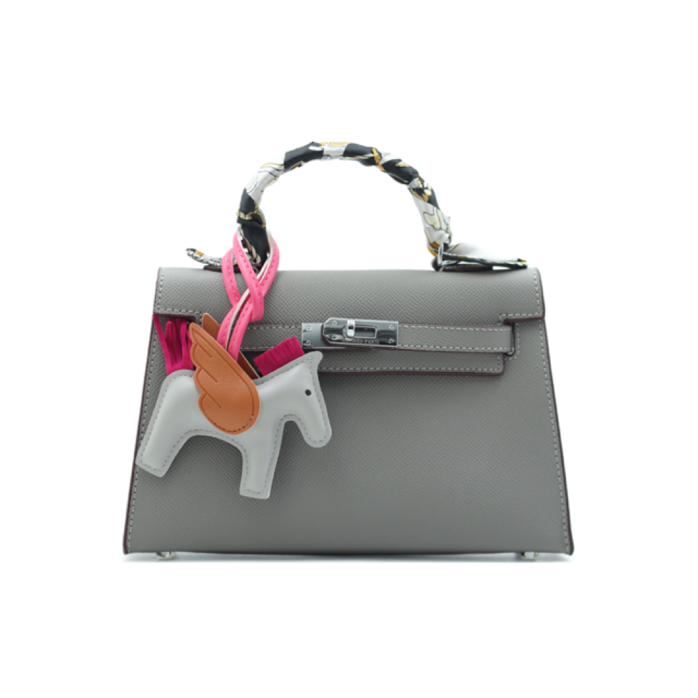 اختاري إطلالة لا مثيل لها مع شنطة كيلي هرمز رصاصي أنيق، تتميز بإضافة لمسة من الإبداع مع التعليقة الرائعة على شكل حصان باللون الأبيض مع الوردي ما يجعلها قطعة فريدة تبرز أناقتكِ في كل مناسبة.