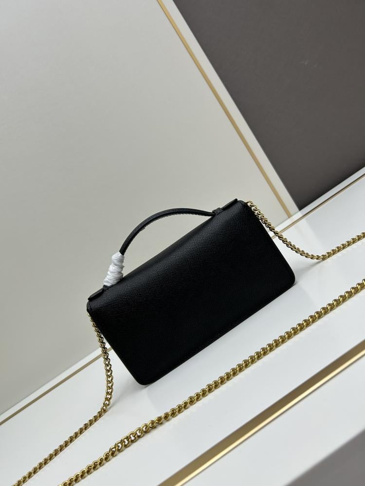 - شنطة سوداء نسائية تتميز بتفاصيل أنيقة وشعار بارز يعكس مكانة العلامة التجارية وجودتها الرفيعة.