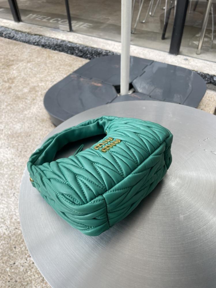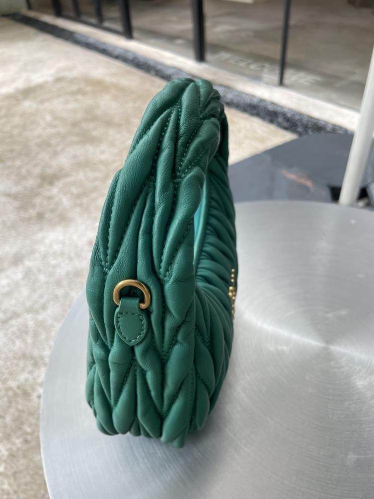 استمتعي بإطلالة مميزة مع شنطة خضراء ميو ميو، التي تجمع بين التصميم العصري والتفاصيل الجريئة. شعار ميو ميو الذهبي يضيف لمسة من الفخامة، بينما يوفر لك التصميم الصغير والعملي راحة تامة في الاستخدام. مع يد قابلة للتعديل، تعتبر هذه الشنطة الخيار المثالي لجميع الأوقات.