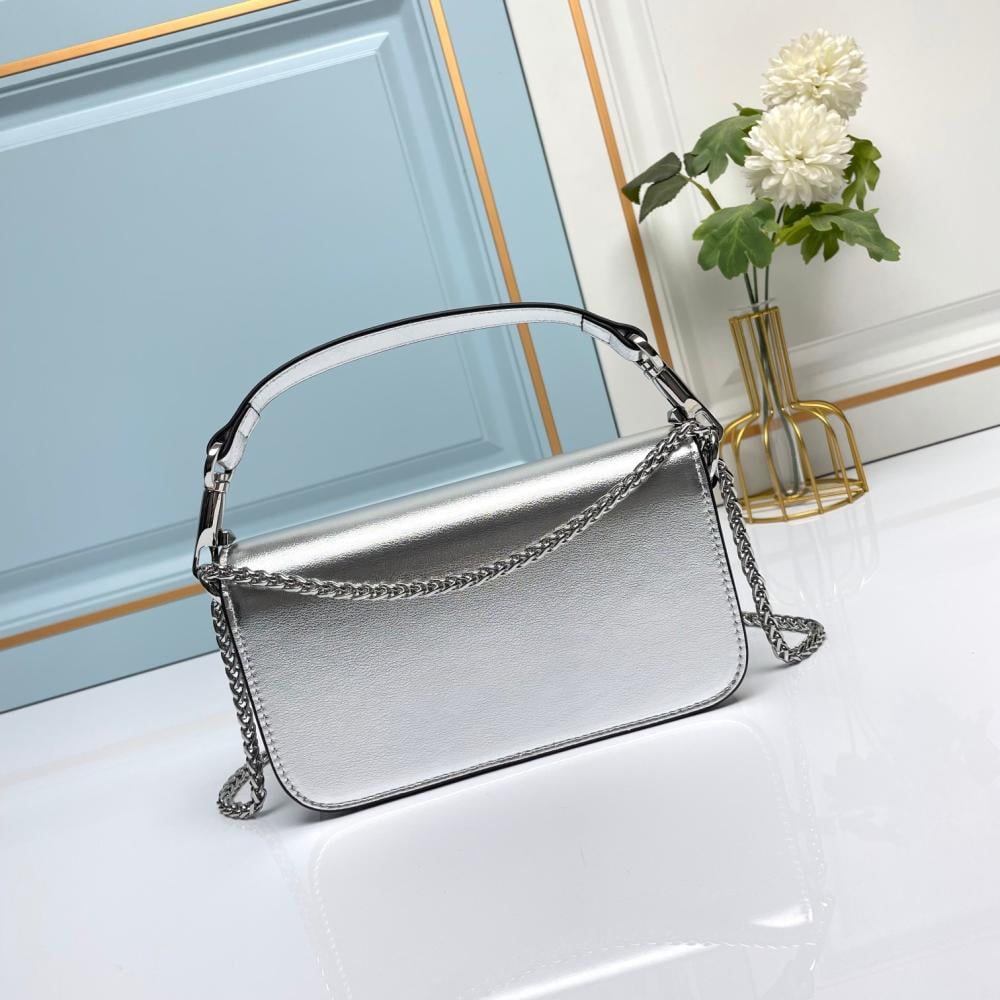 Whether you're heading to a party, an elegant dinner, or a formal event, this small bag will be the perfect choice to express your refined taste. Get this silver Valentino bag today and feel confident and sophisticated with every step.