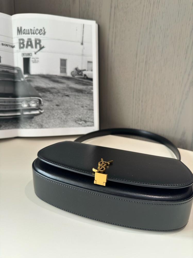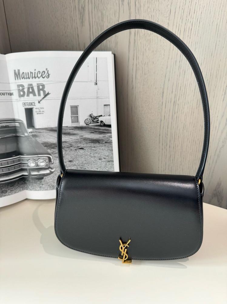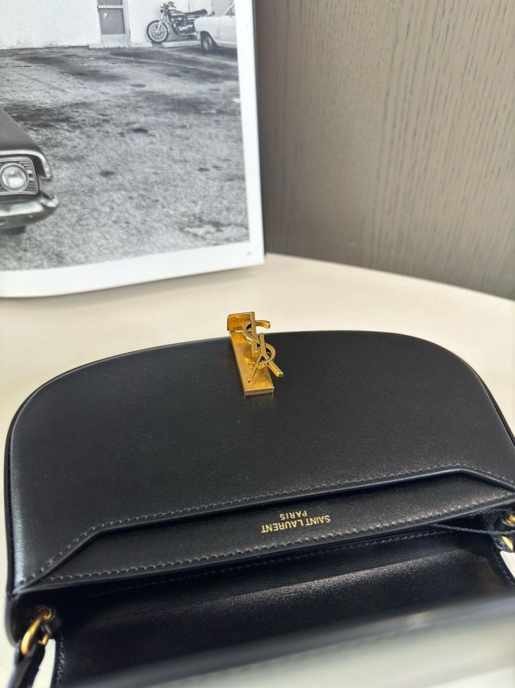 - Yves Saint Laurent bag highlights the brand's luxury identity.