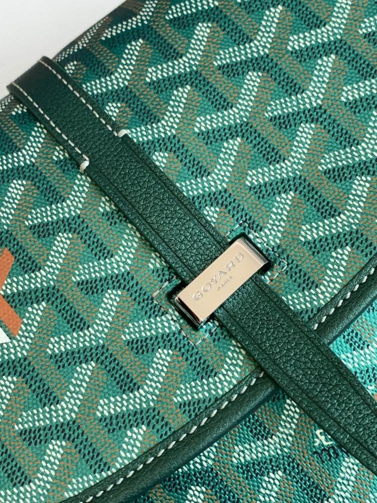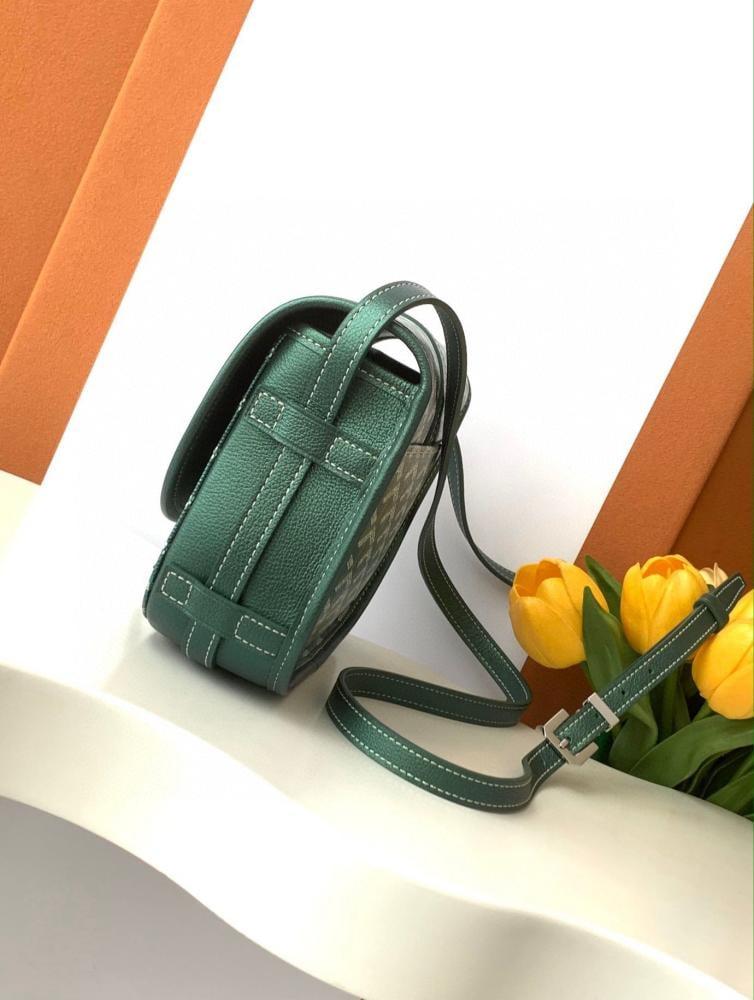 Shine with your unique style with the Goyard Belvedere MM Green bag, which combines classic design with elegant, contemporary touches. This bag features its perfect size, luxurious materials, and attractive green color, adding a touch of luxury to your look.