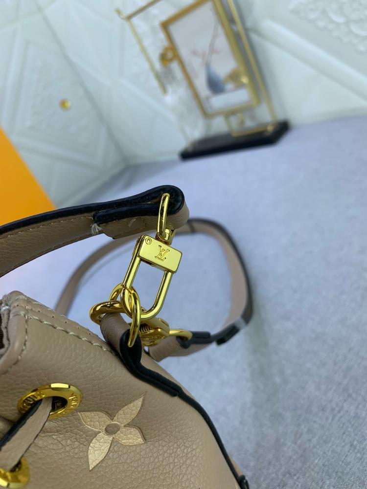 - شنطة ميني قفل معدني أنيق مزخرف بشعار LV الأيقوني، مما يعزز مظهرها الفاخر.