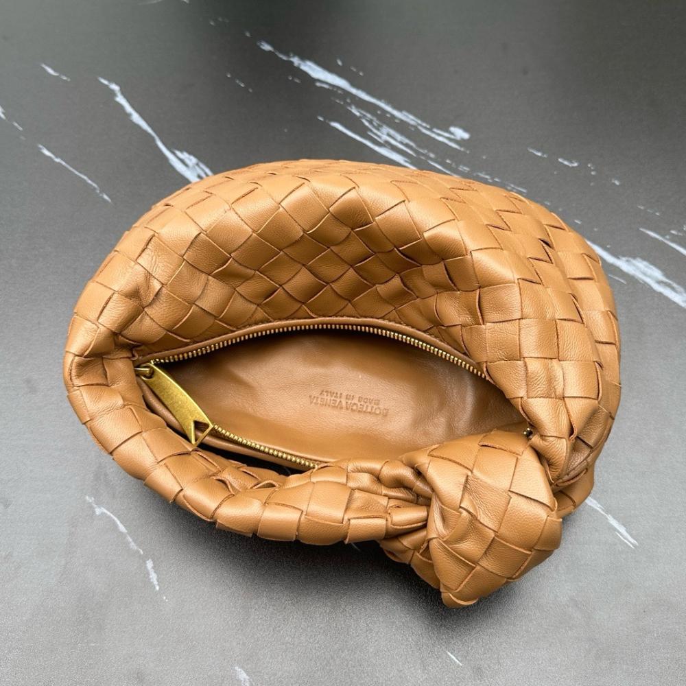 - شنطة يد جلد بني تفاصيل معدنية أنيقة وشعار Bottega الأصلية.