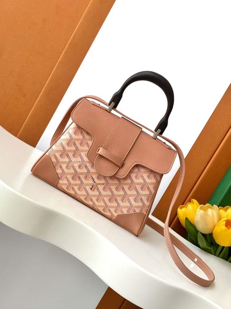 Shine with a style that combines luxury and practicality with the Goyard Saigon Super Mini bag in light brown, the perfect bag for those who love elegance.